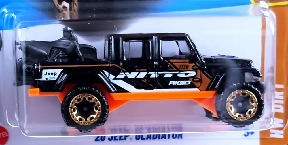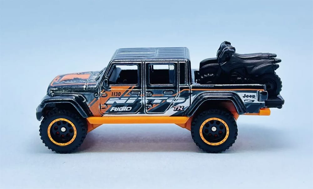 The Hot Wheels casting is based on the Jeep Gladiator, a midsize pickup truck that takes an off-road capable Jeep and adds a 5-foot truck bed.