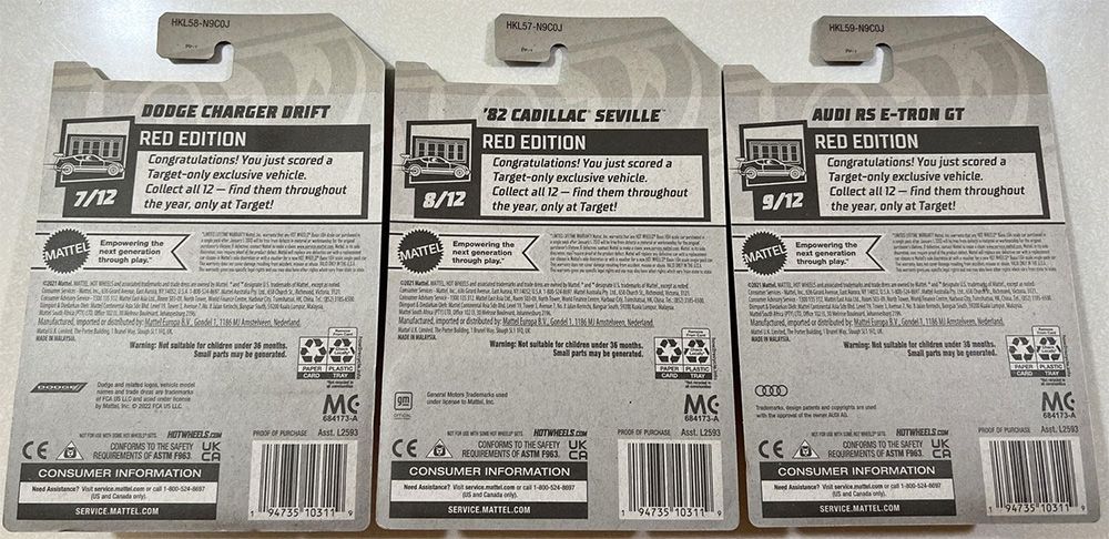 Red Edition uses recolored vehicles from other series that share the same graphics and mainline collector number. A total of twelve cars will be released for this Target exclusive set.