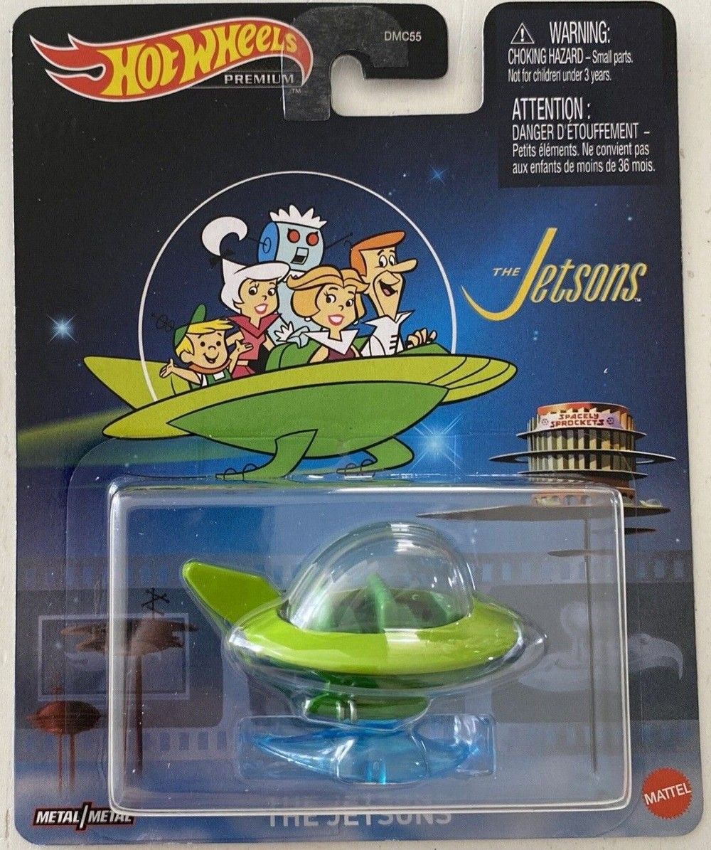 Each vehicle features an all-metal body and premium details. The Jetsons Capsule doesn't have wheels, but all of the others have Real Riders.