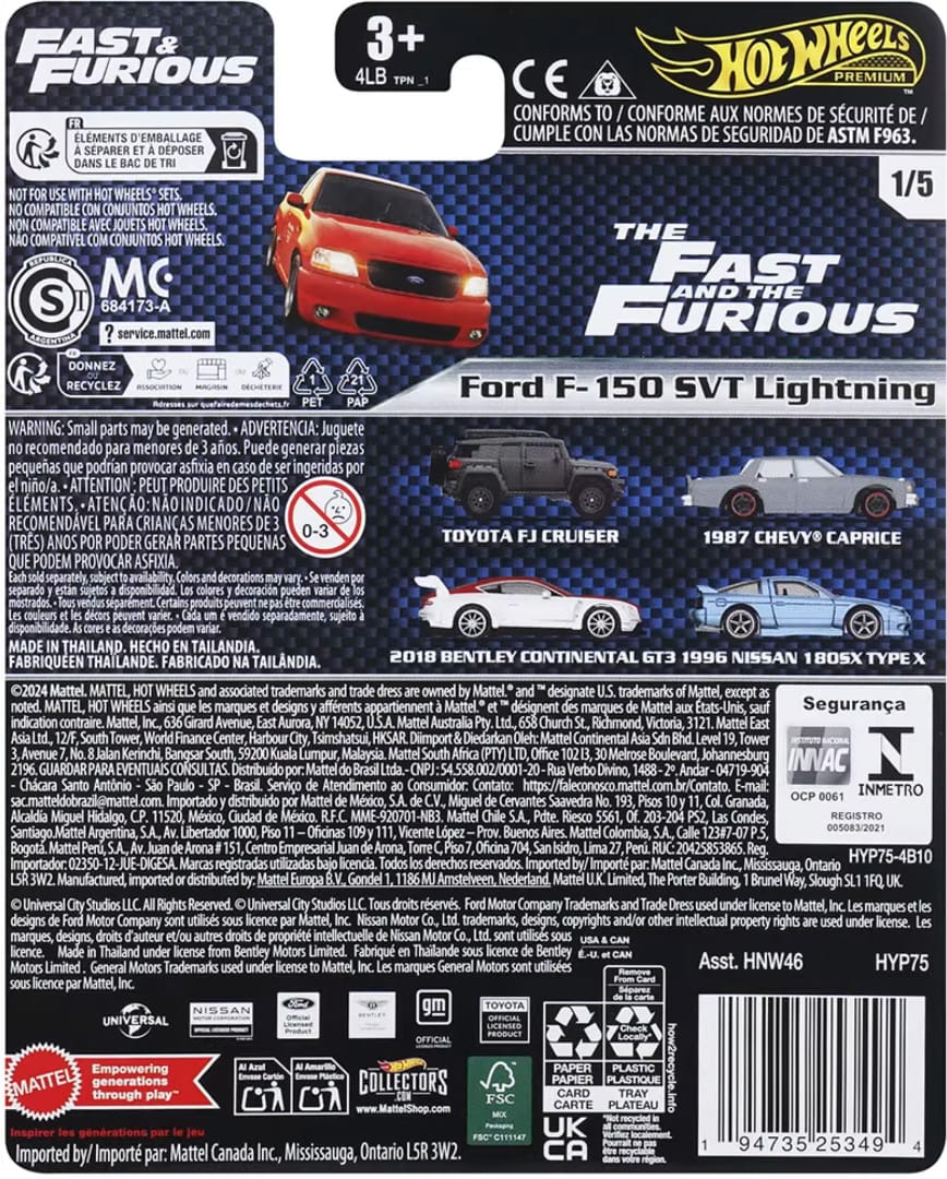 This set of Fast & Furious is in mix "H" of assortment HNW46 and ships in 10-count cases. Cases should be evenly packed with two of each car. Vehicles are metal/metal with premium details and Real Rider wheels.