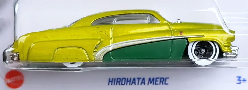 The Hirohata Merc is a 1950s lead sled, a heavily modified car that has the roof chopped, the body lowered, lights recessed, emblems removed, and other customizations.