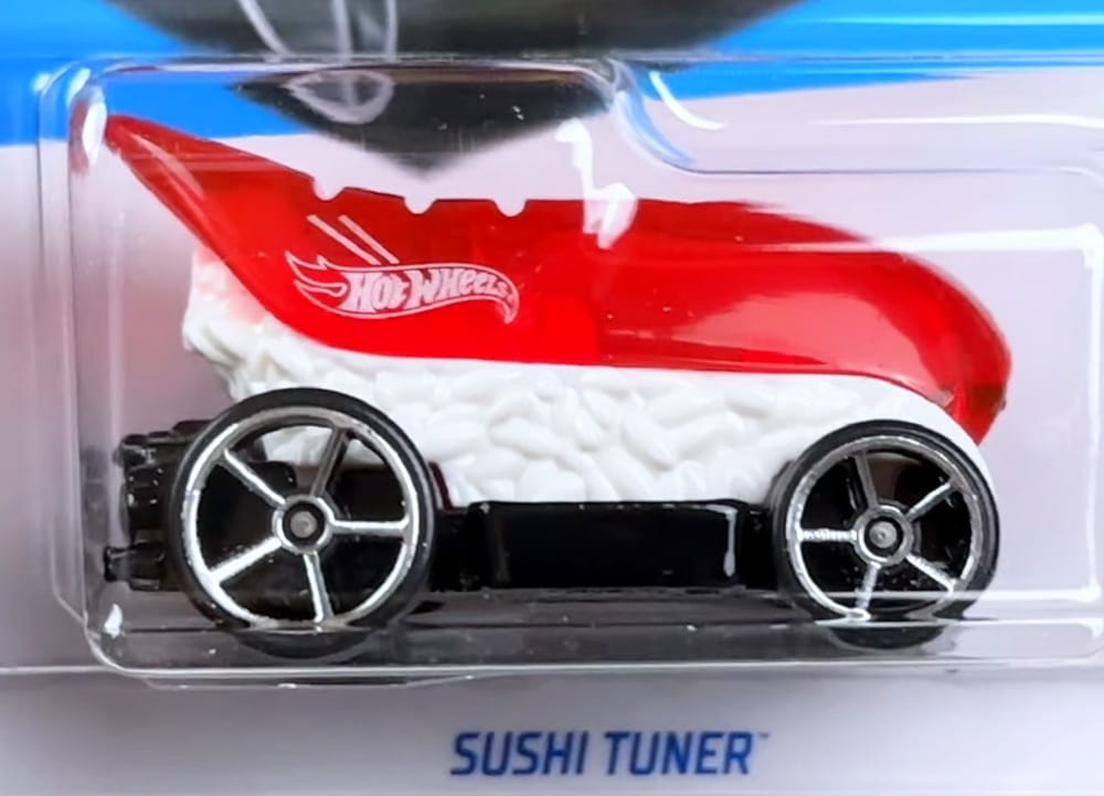 The Sushi Tuner is an original Hot Wheels casting that blends a sushi roll with a hot rod.