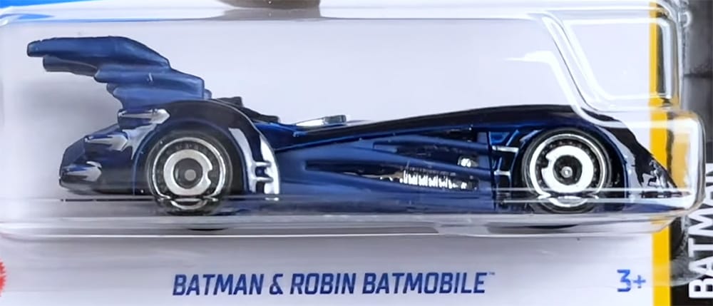 The Batmobile is based on the one from the Batman & Robin 1997 movie. It is a single-seat Batmobile since Robin had his own motorcycle.