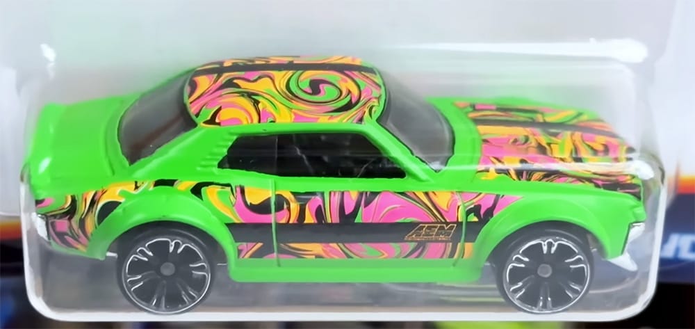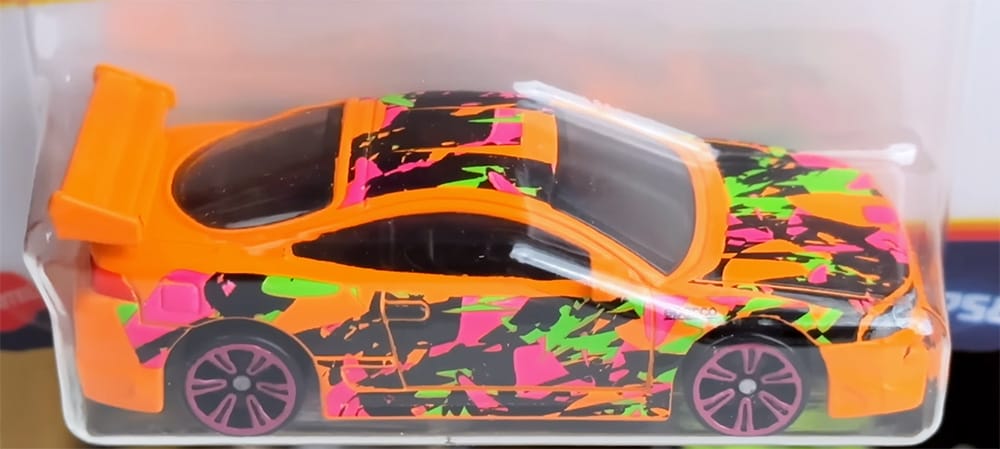 Close up pics of Neon Speeders, the Hot Wheels line known for its cars adorned with vivid colors and bold graphics.