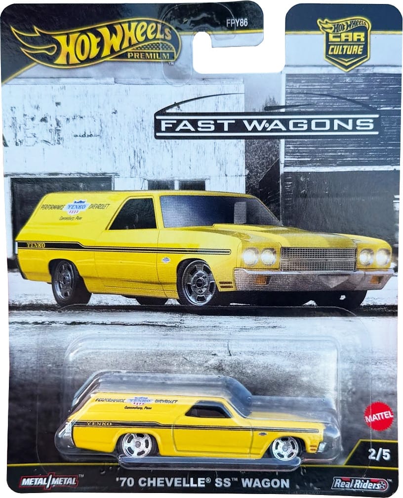 Car Culture vehicles are metal/metal with premium details and Real Rider wheels. Fast Wagons is in mix "J" of assortment FPY86 and ships in 10-count cases. Two of each vehicle should be in a case unless one has been replaced with the chase car.