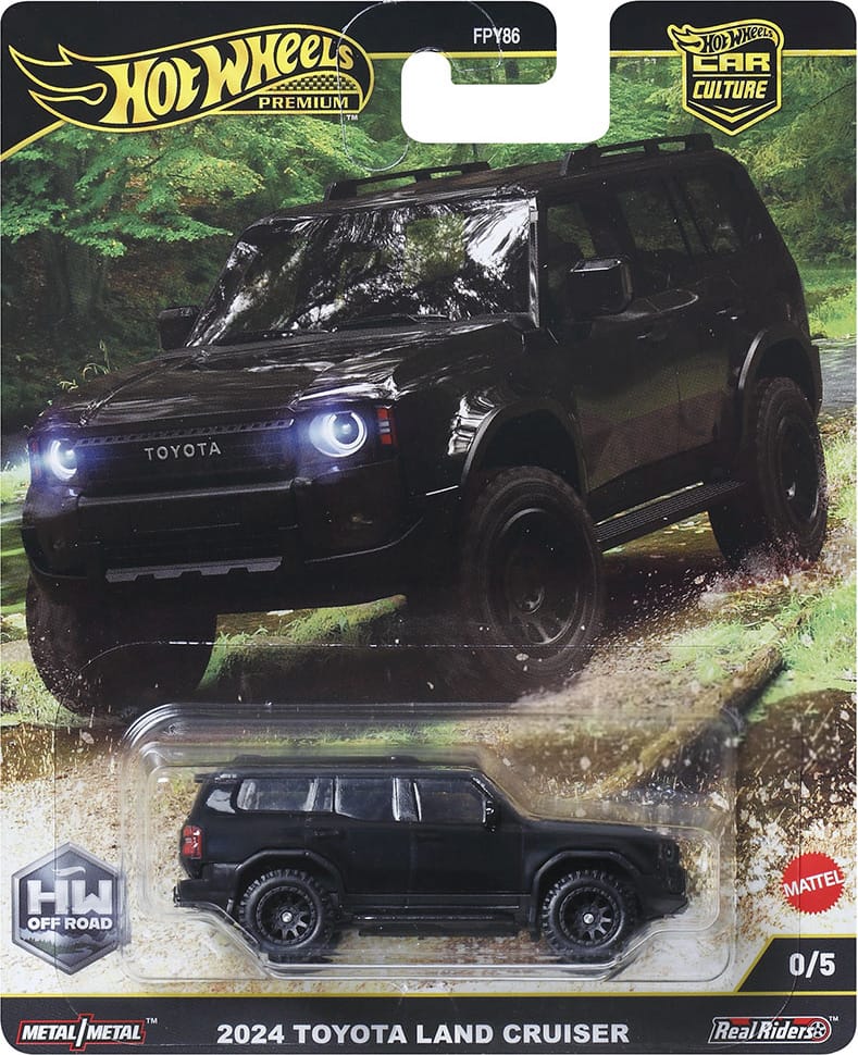 Take a peek at these promo pics of HW Off-Road, the third Hot Wheels Car Culture series of 2025. The set includes five vehicles designed for rugged terrain, with the 2024 Toyota Land Cruiser debuting as a new casting.