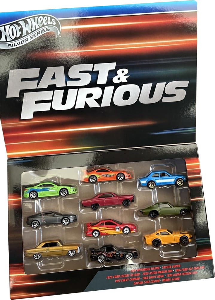 A Hot Wheels Fast & Furious 10-car box set will be back for 2025. It includes vehicles inspired by those in the Fast & Furious film franchise.