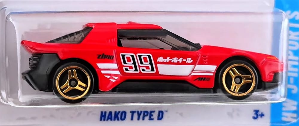 The Hako Type D is a fantasy casting of a 1980s Japanese coupe. Its style is based on iconic vehicles like the Toyota AE86, Toyota Supra, Mazda RX-7, and Nissan Silvia.