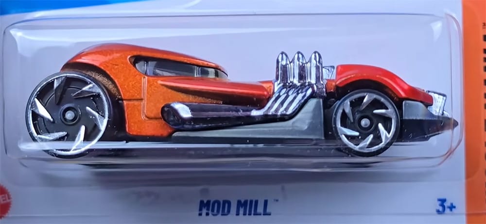 As its name implies, the Mod Mill blends elements from both the Mod Rod and the Twin Mill. It’s a hot rod design with asymmetrical engines, taking inspiration from the futuristic look of Mod Rod and the twin-engine setup of Twin Mill, Hot Wheels’ first original creation.