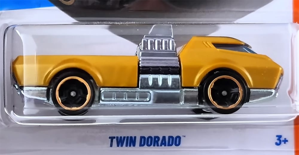 The Twin Dorado is an original Hot Wheels casting of a flatbed truck. It merges the twin-engine layout of Twin Mill with the retro-futuristic styling of the Deora.