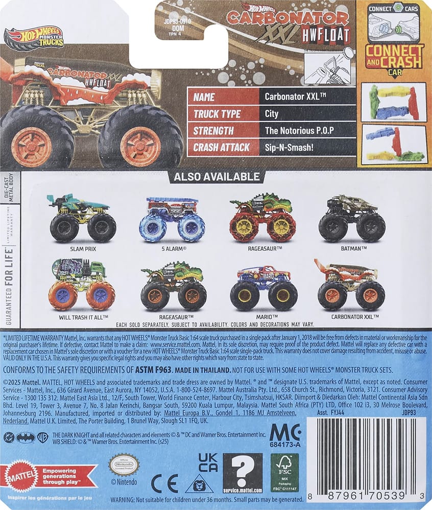 Hot Wheels Monster Trucks are in assortment FYJ44 and ship in 8-count cases.