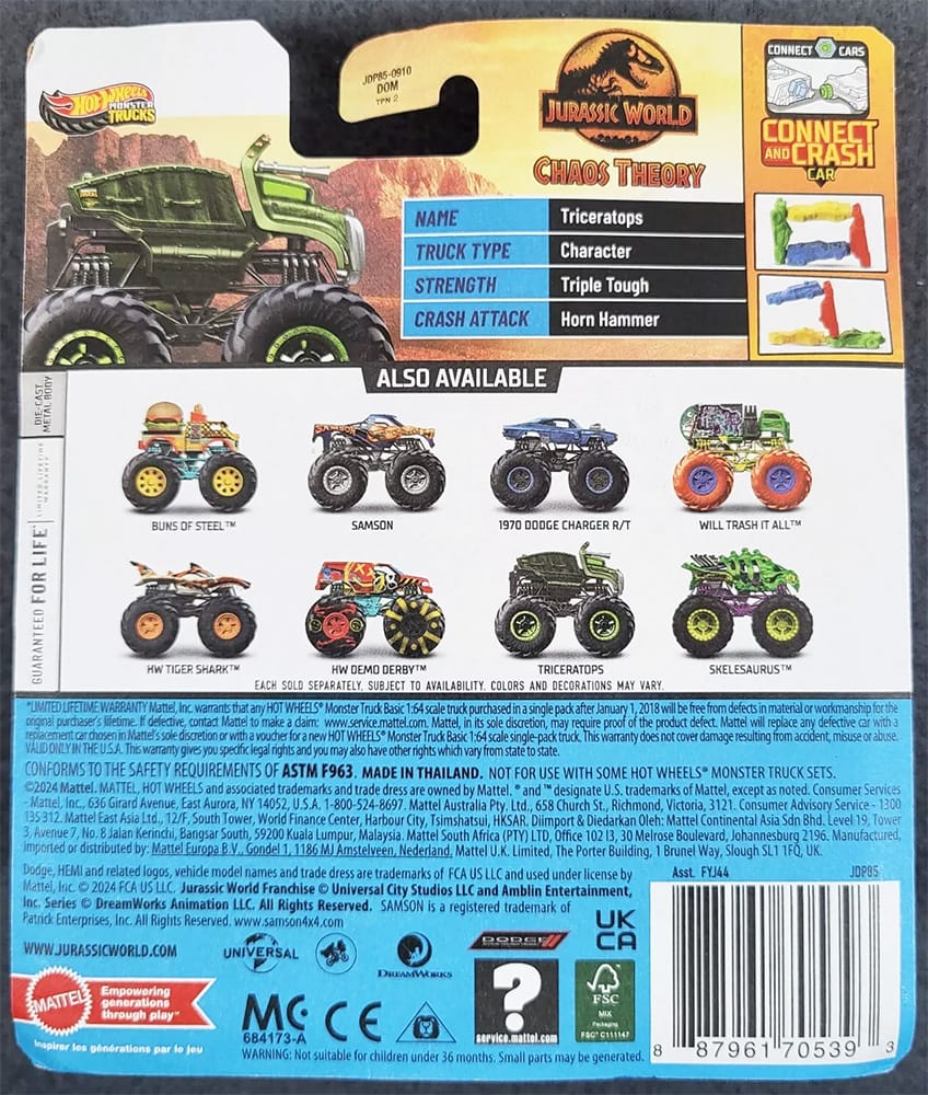 Hot Wheels Monster Trucks are in assortment FYJ44 and ship in 8-count cases.