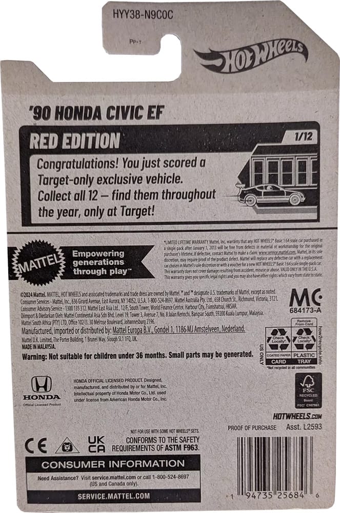 Congratulations! You just scored a Target-only exclusive vehicle. Collect all 12 - find them throughout the year, only at Target!