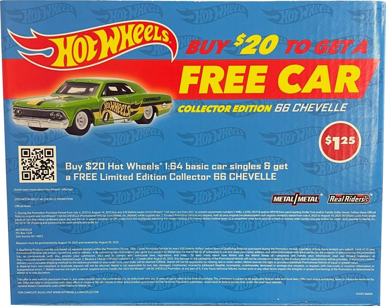 To get the car, you need to purchase $20 in Hot Wheels from Dollar Tree or Family Dollar stores from July 4, 2025, to August 14, 2025.