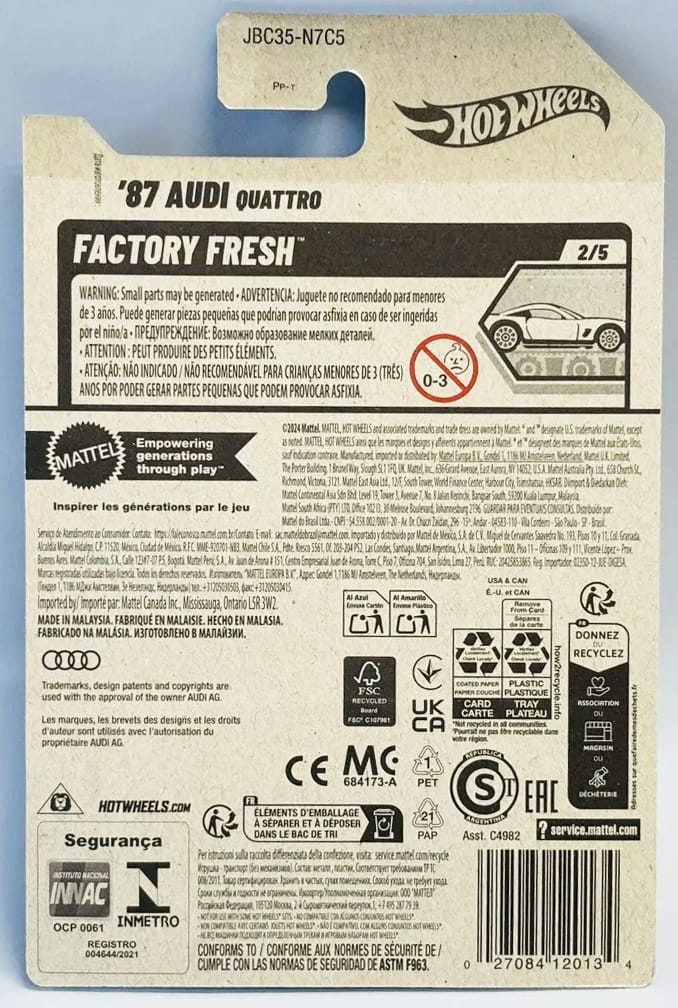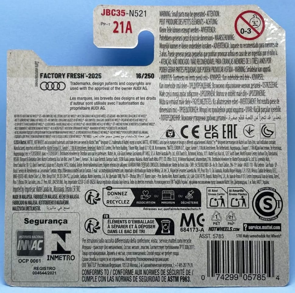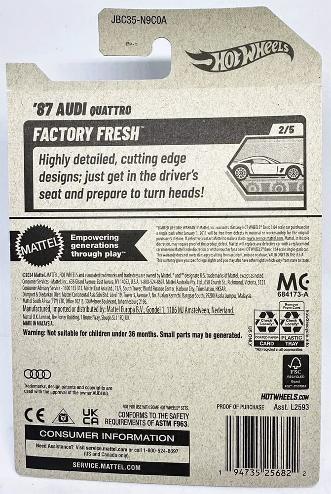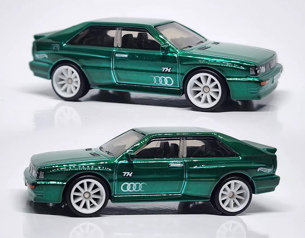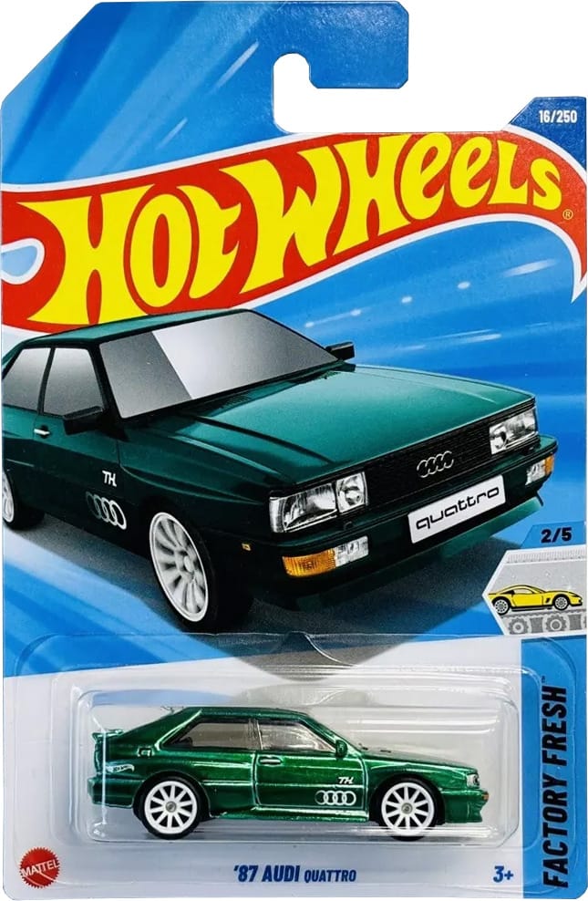The '87 Audi quattro 2025 Super Treasure Hunt packaged on its U.S., international, and short cards.