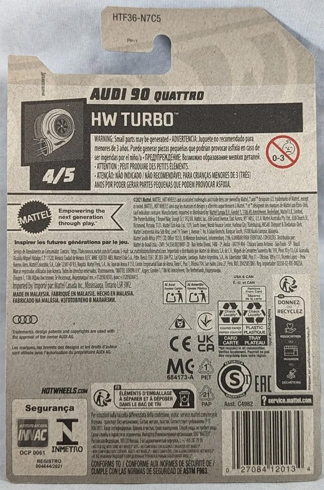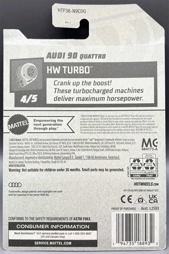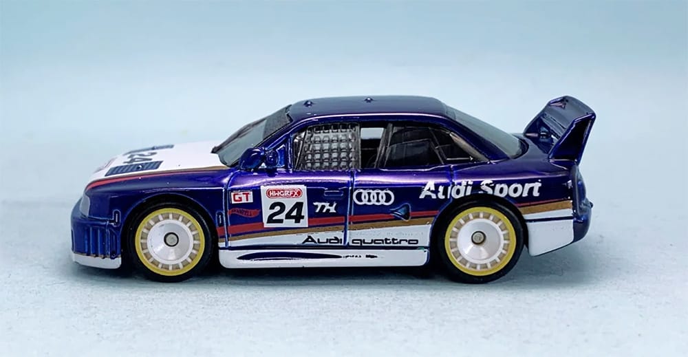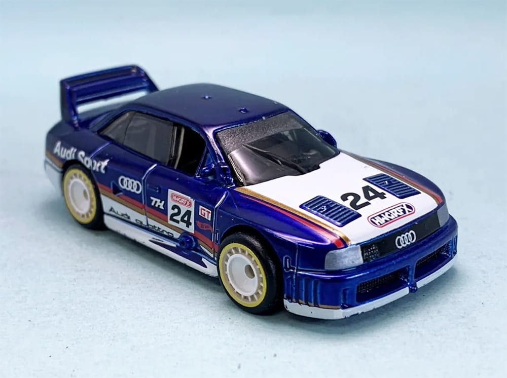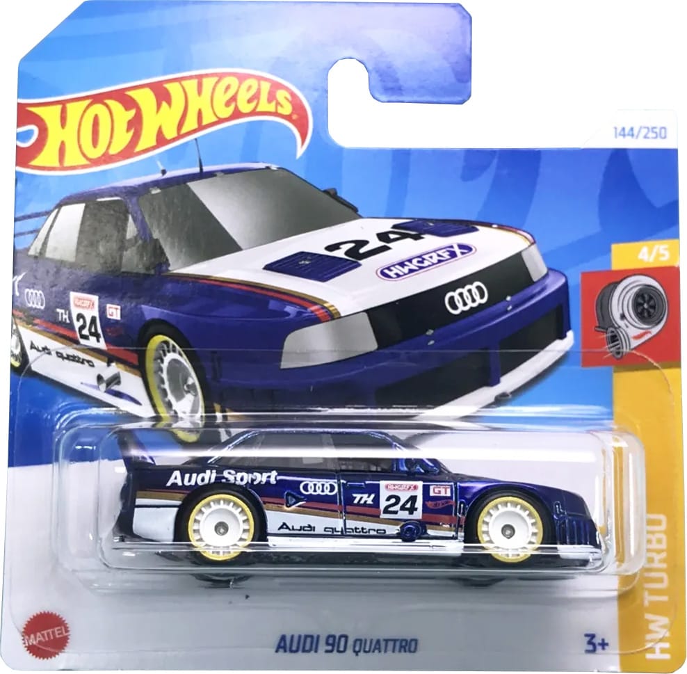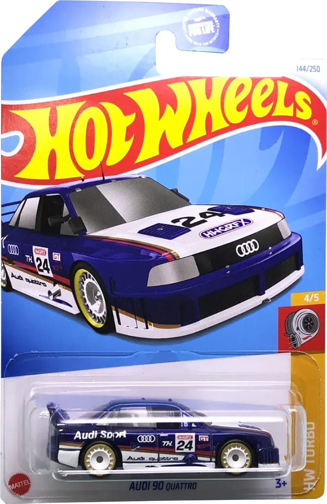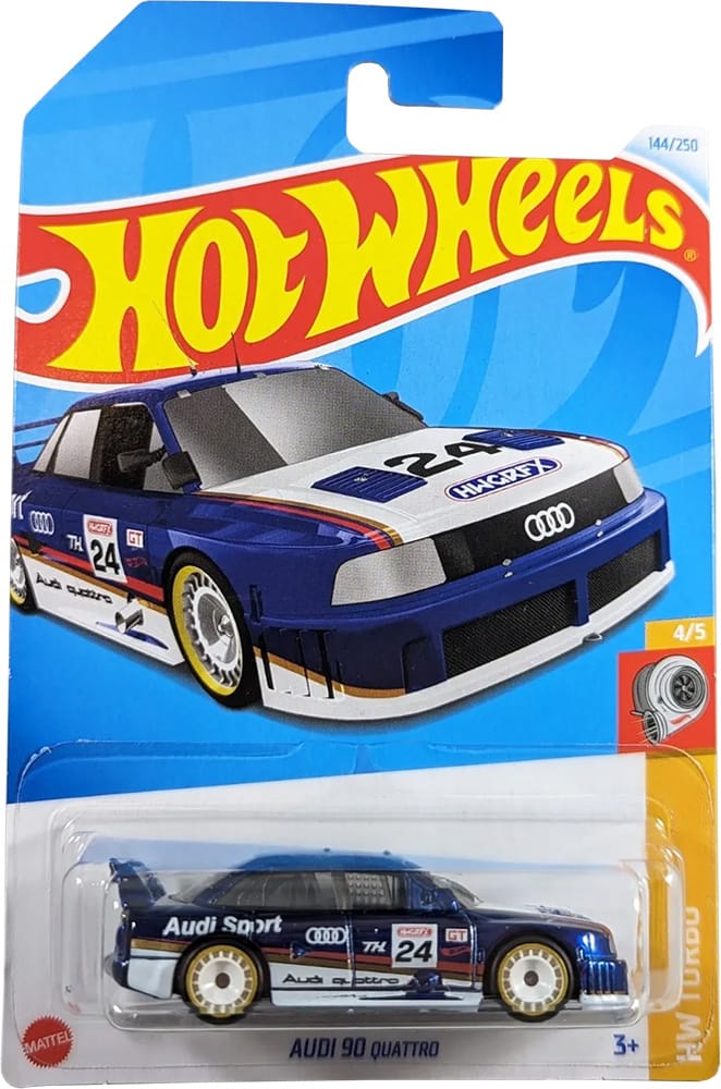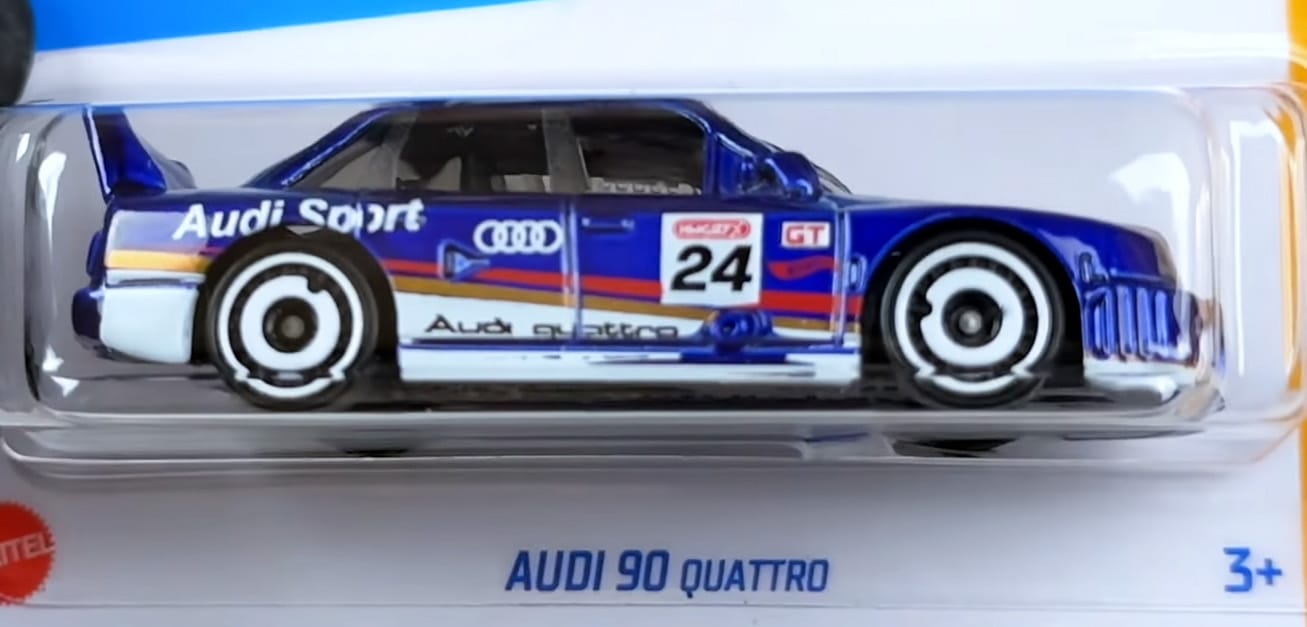 The Audi 90 quattro 2024 Super Treasure Hunt packaged on its U.S., international, and short cards.