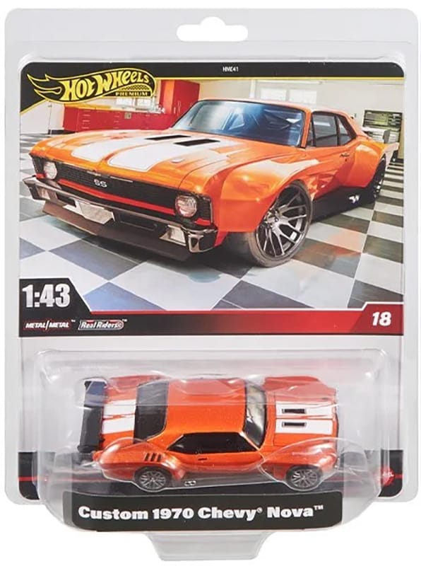 Here are promo pics of cars 18 through 21 in the Hot Wheels 1:43 scale series. The premium series focuses on detail and realism while staying true to scale.