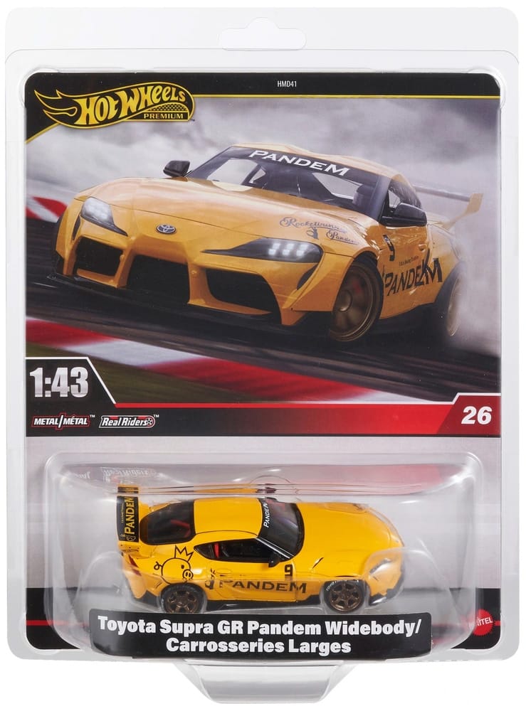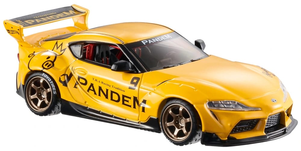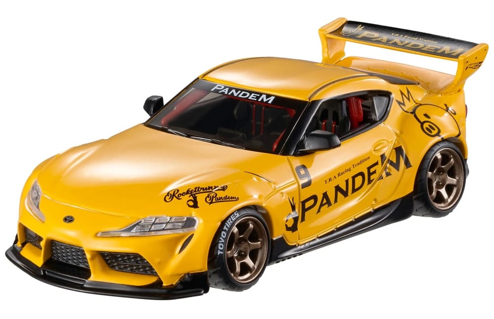 The Toyota GR Supra Pandem widebody is a fifth-generation Supra, produced since 2019, fitted with a Pandem body kit from TRA Kyoto that adds much wider fenders, more aggressive front and rear bumpers, side skirts, and a large rear wing. Adding a Pandem kit to a Supra costs around $9,500, excluding installation.
