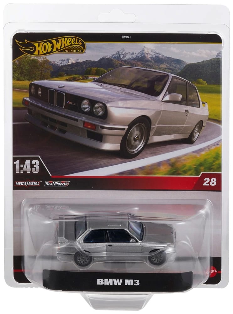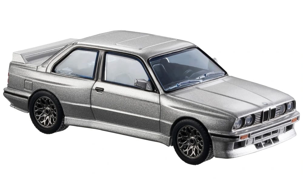 The BMW E30 M3 was built from 1986 to 1991 as a homologation special for Group A touring car racing. It used a high-revving 2.3-liter S14 inline-four producing around 192 hp, and a top speed near 146 mph. This casting features the M3 with a widebody kit.
