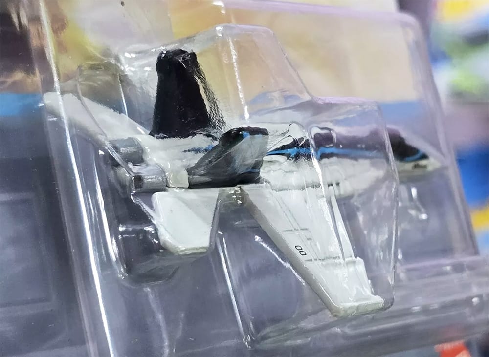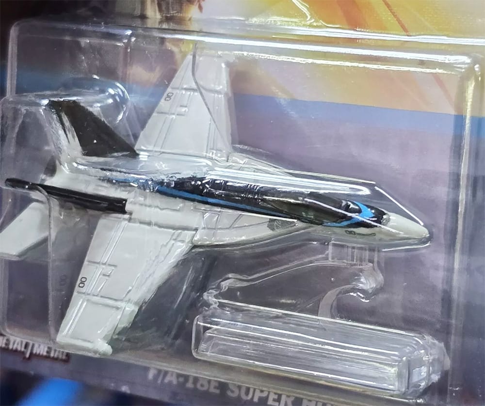 The livery of this brand new Hot Wheels casting is inspired by the F/A-18E Super Hornet piloted by Captain Pete "Maverick" Mitchell, portrayed by Tom Cruise in Top Gun: Maverick.