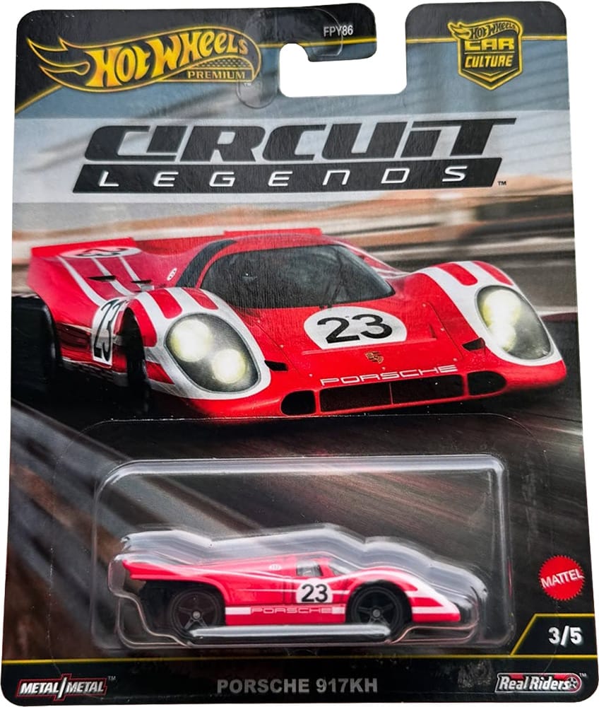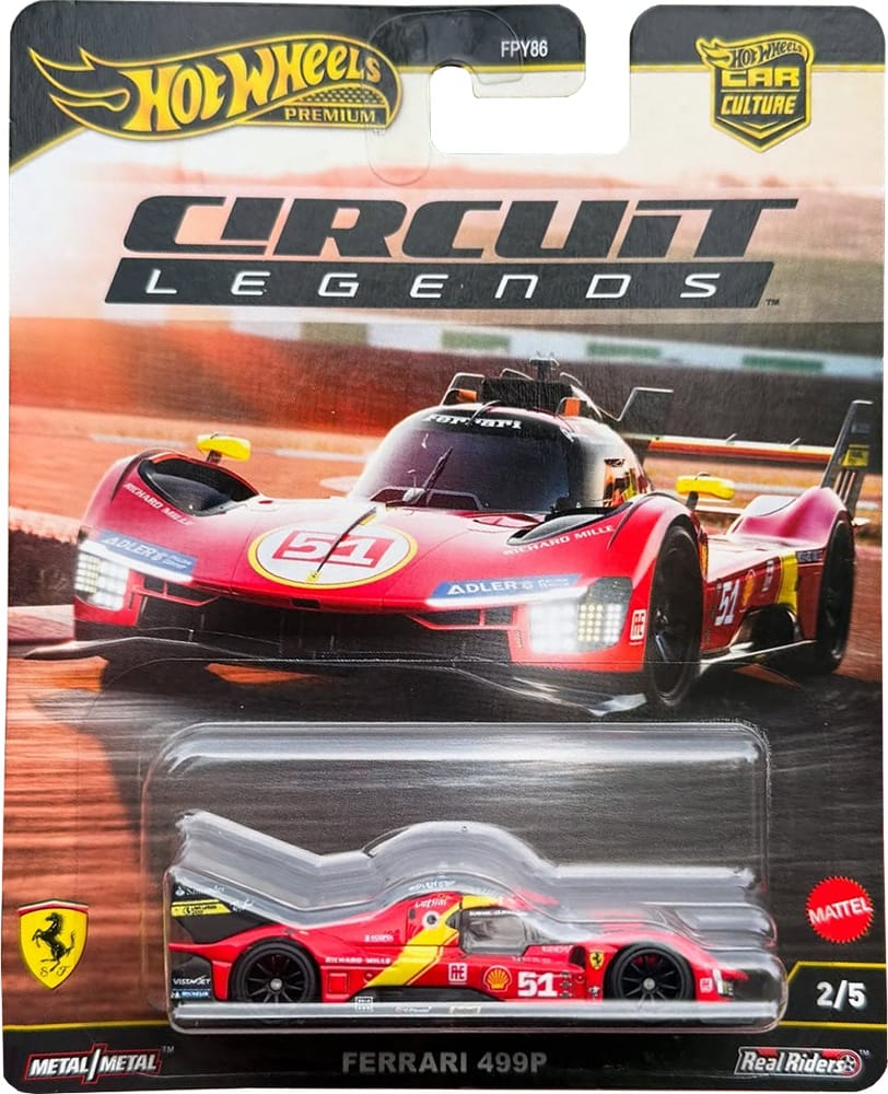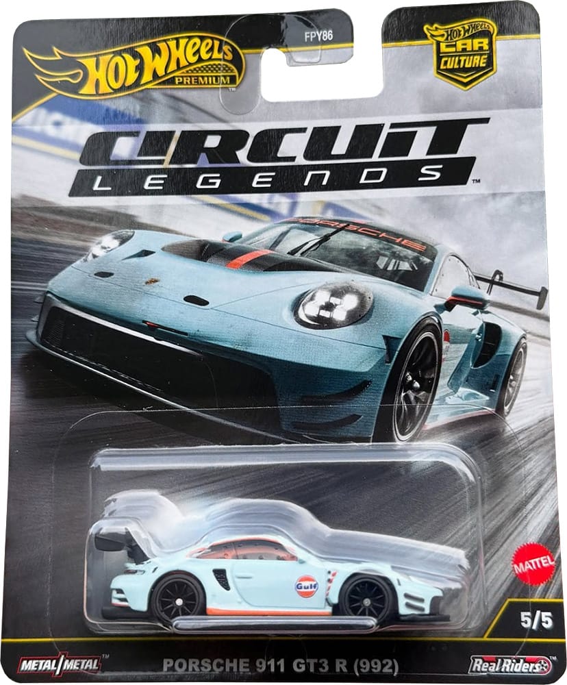 Car Culture vehicles are metal/metal with premium details and Real Rider wheels. Circuit Legends is in mix "K" of assortment FPY86 and ships in 10-count cases. Two of each vehicle should be in a case unless one has been replaced with the chase car.