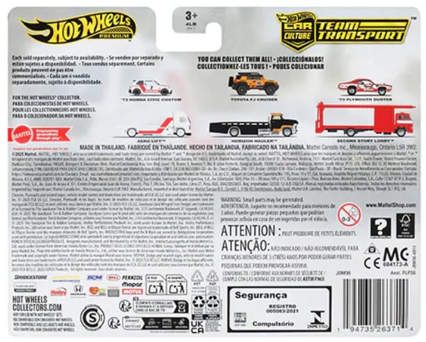 Car Culture: Team Transport is an ongoing series that began in 2018. This batch of vehicles is in mix "G" of assortment FLF56 and ships in 4-count cases.