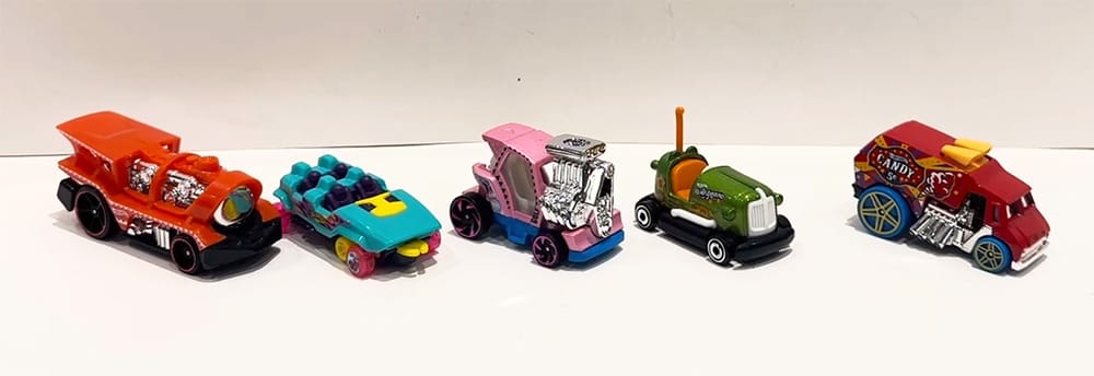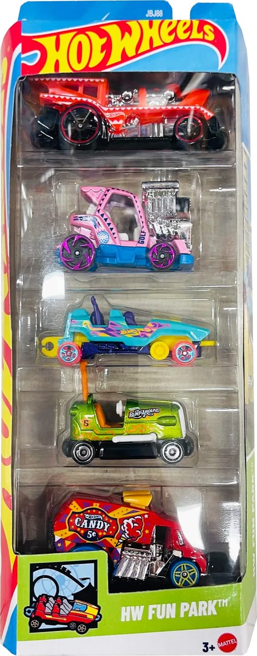 Take a look at HW Fun Park, a new Hot Wheels 5-pack for 2025. It includes five vehicles with playful liveries inspired by a day at an amusement park or carnival.