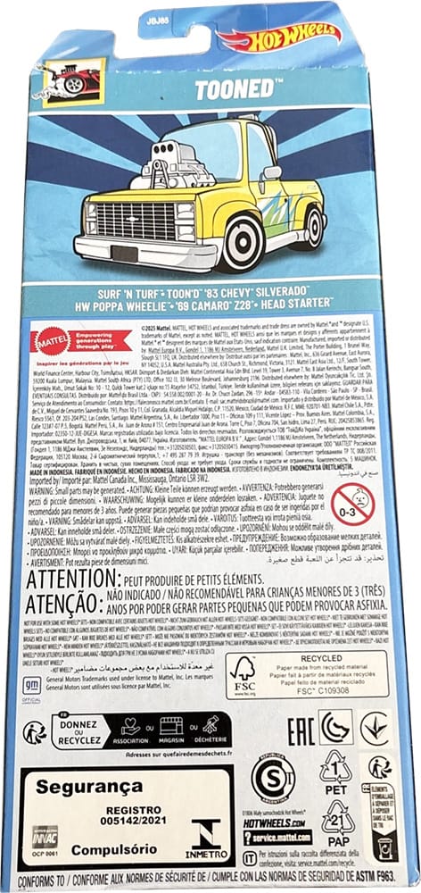 The Tooned 5-pack is toy# JBJ85. Hot Wheels 5-packs are made in Indonesia and ship in assortment 01806.
