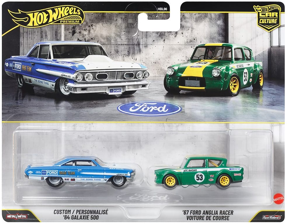 The '67 Ford Anglia Racer sports a brand-new livery, while the Custom '64 Galaxie 500 is the same as its 2019 Car Culture: Team Transport release.