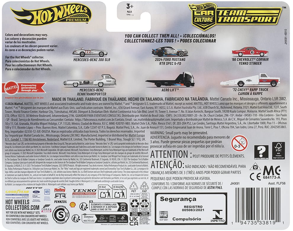 Car Culture: Team Transport is an ongoing series that began in 2018. This batch of vehicles is in mix "K" of assortment FLF56 and ships in 4-count cases.