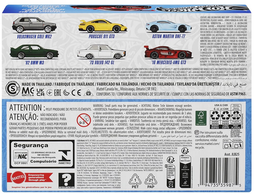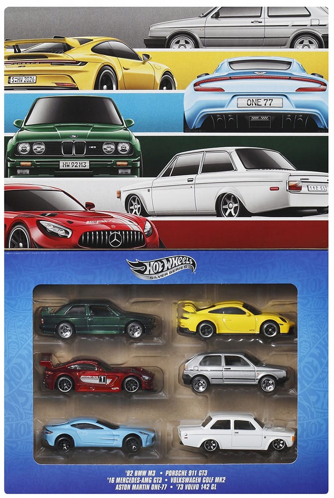 Promo pics of the upcoming Hot Wheels 2026 Euro Style box set. The European set includes six vehicles from German, British, and Swedish manufacturers.
