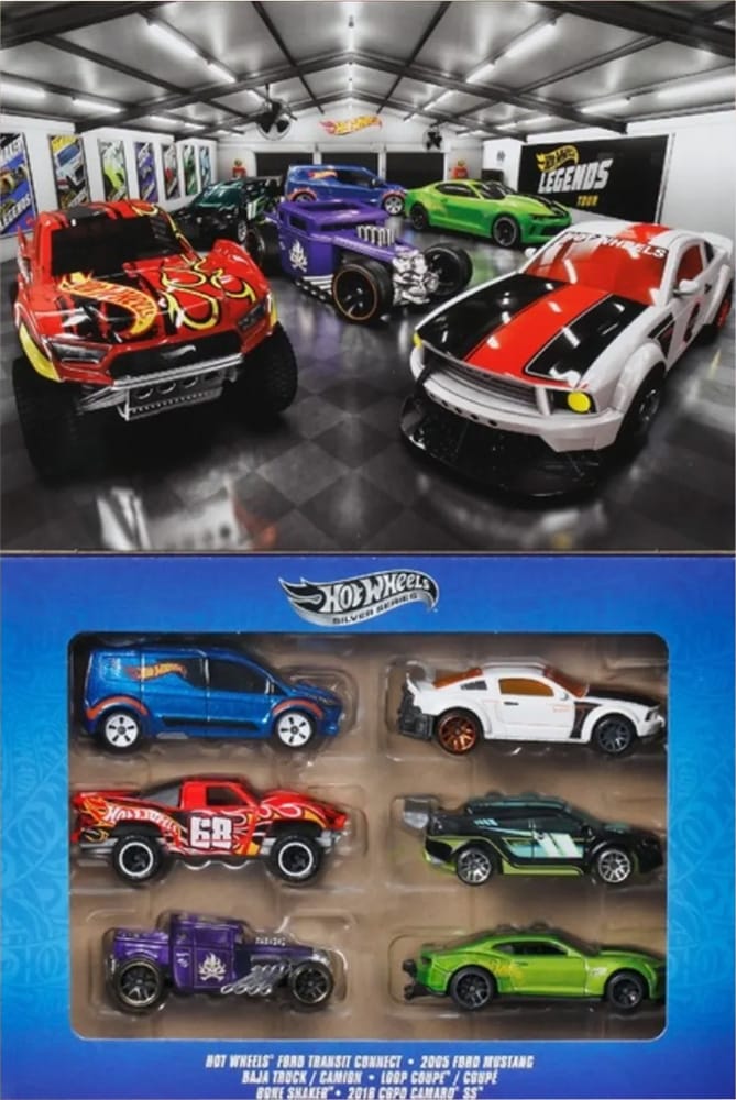 Take a peek at promo pics of the Hot Wheels 2026 Legends box set. The set features six cars inspired by builds from the Hot Wheels Legends Tour and the Garage of Legends.