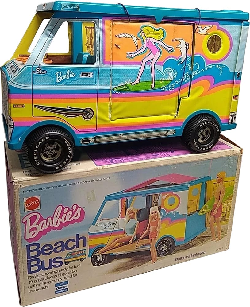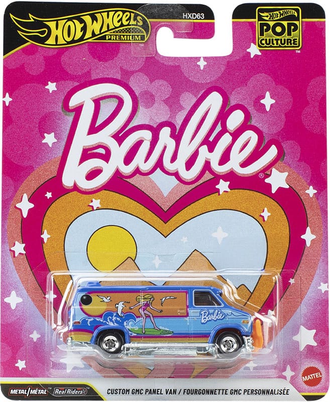The Custom GMC Panel Van features artwork inspired by Barbie’s Beach Bus, a toy first released in the 1970s. The original included 19 accessories and a fold down side patio, letting Barbie and her friends head to the beach for a picnic with an umbrella, table, and bench.