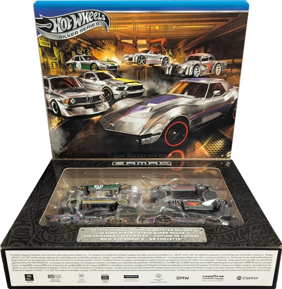 A Hot Wheels box set featuring Zamac cars is back for 2026. The fifth release includes six cars from Europe, Japan and the United States, mixing classic sports cars, muscle, and race inspired builds in raw Zamac finishes.
