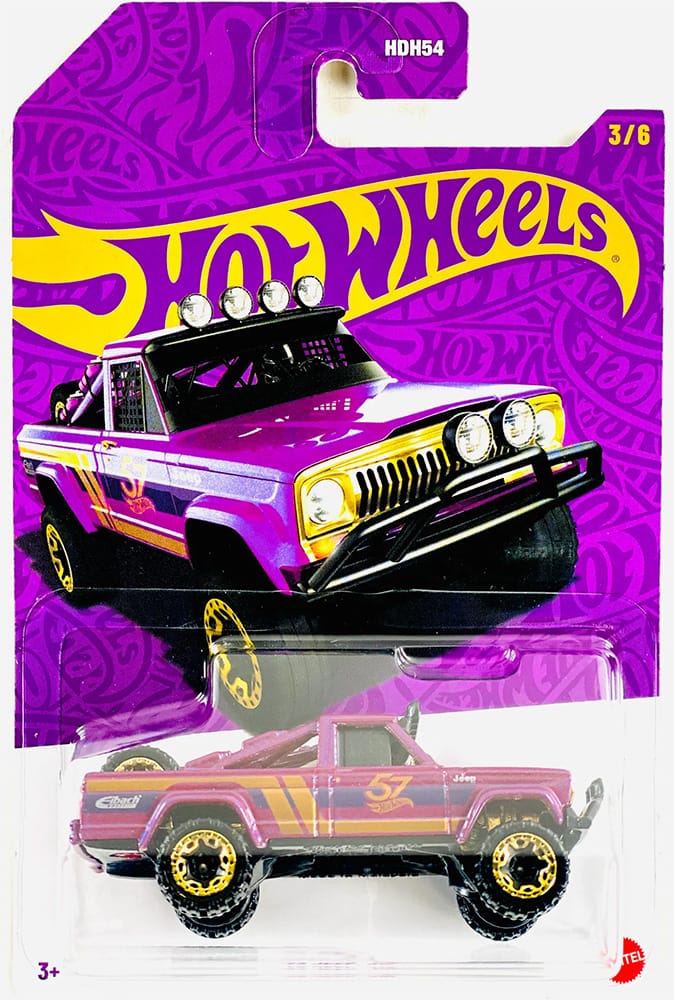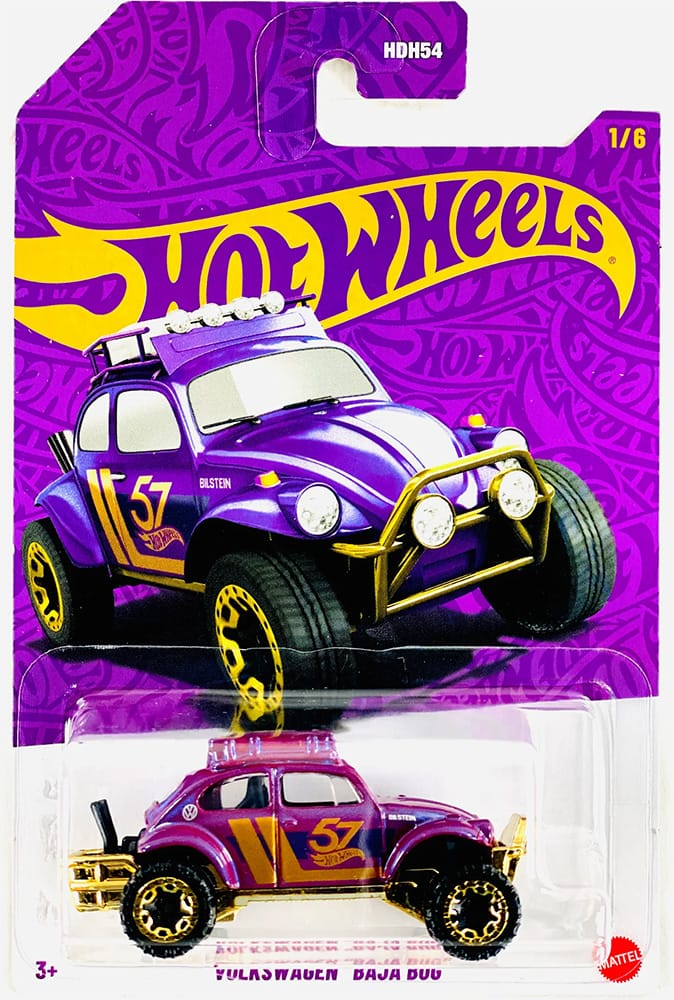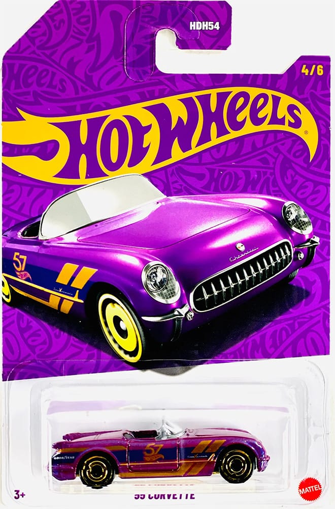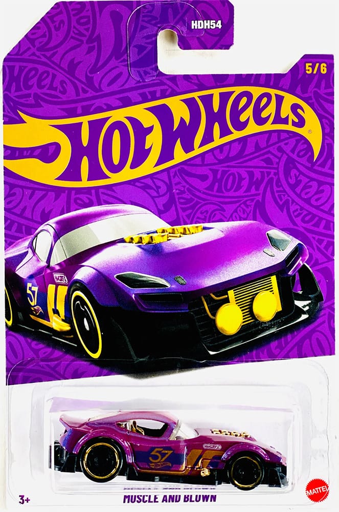 Keep an eye out for the Hot Wheels 57th Anniversary series. This set includes six vehicles, each featuring a striking purple and gold design with a 57th anniversary livery.