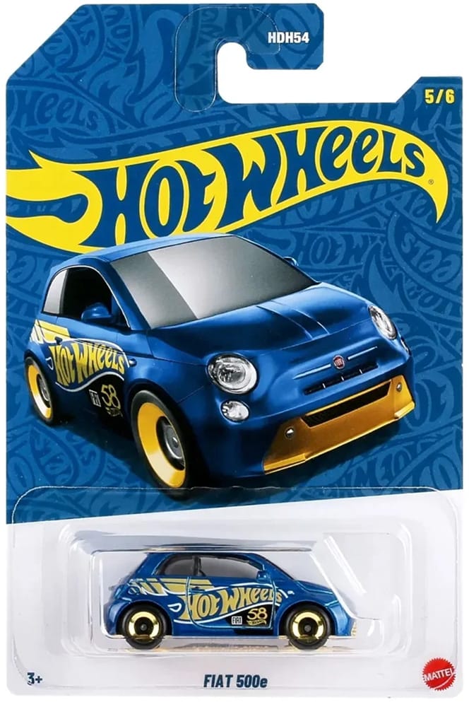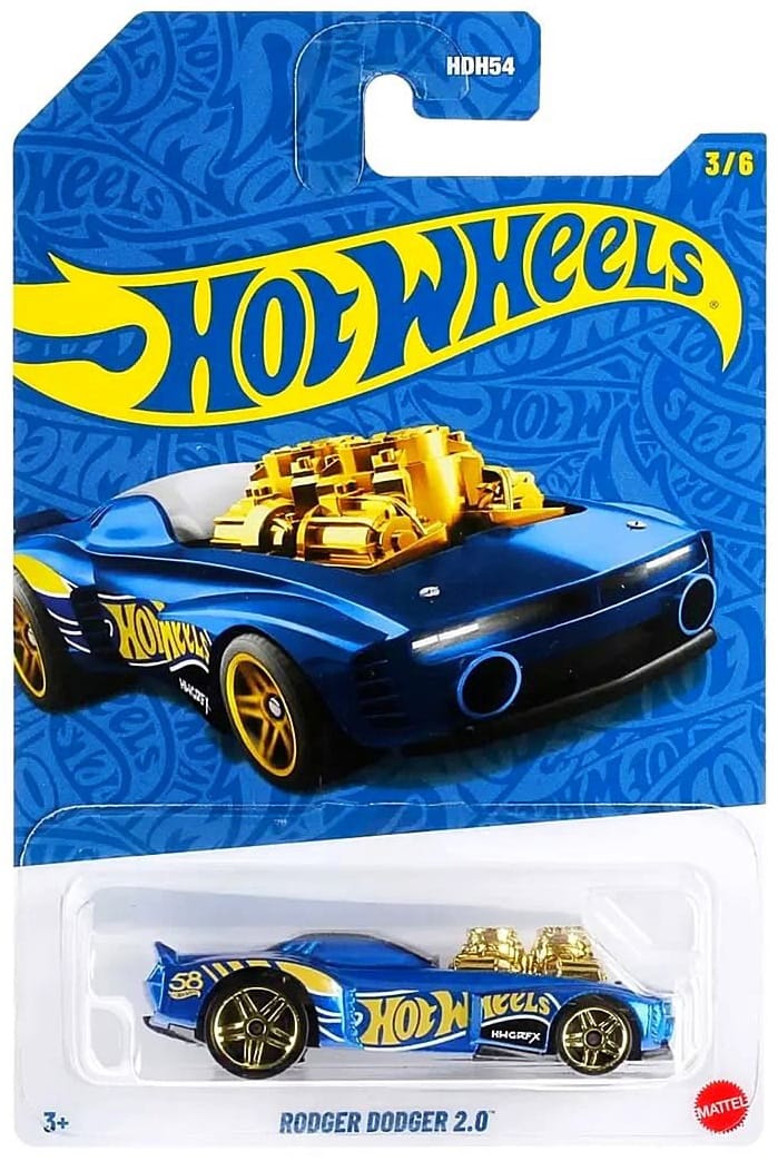 Check out promo pics of the second set in the Hot Wheels 58th Anniversary series. The set includes six vehicles, each with a blue and gold livery featuring the Hot Wheels logo and an anniversary emblem.