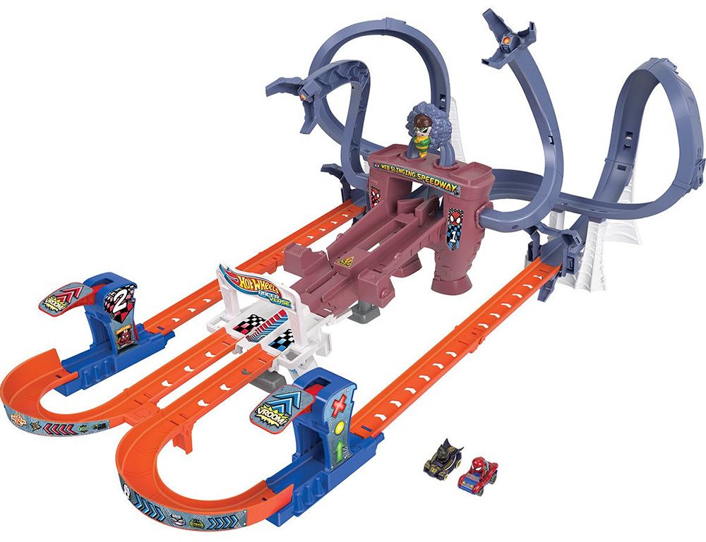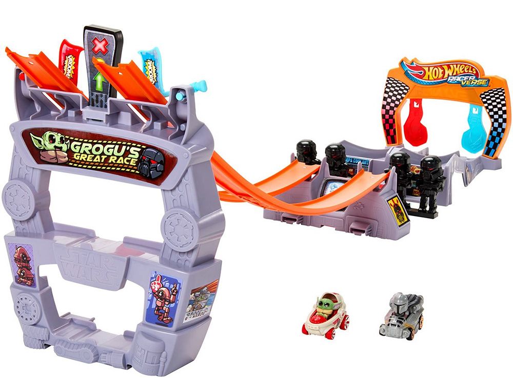 Spider-Man's Web Slinging Speedway and Star Wars Grogu's Great Race will be the first RacerVerse track sets. Each set will come with two RacerVerse vehicles.