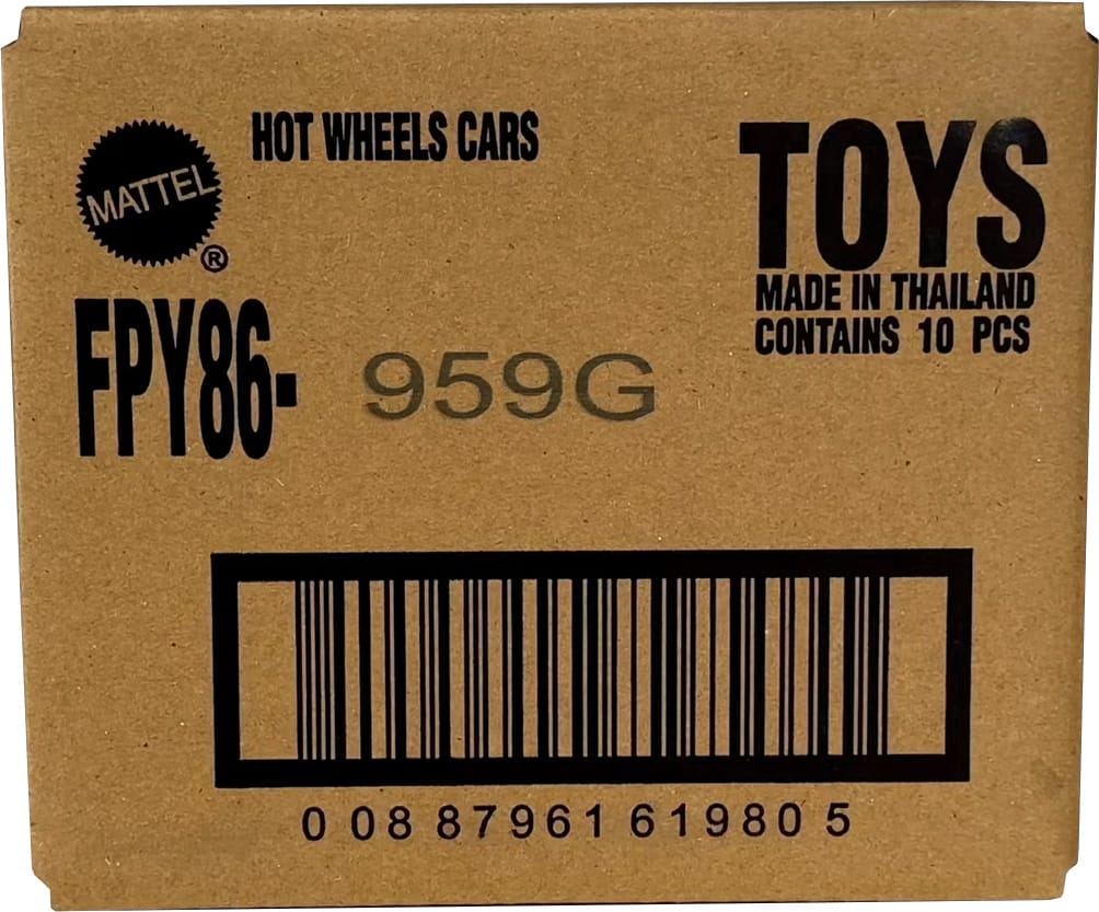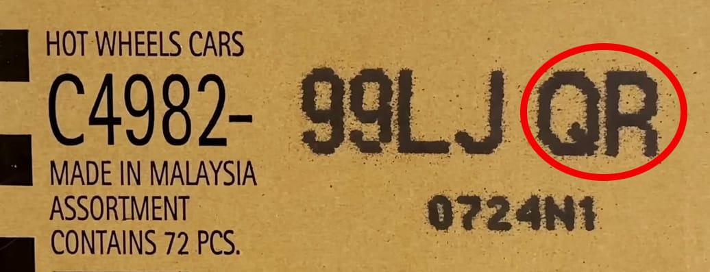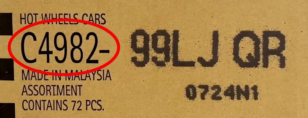 The first code to look for on a Hot Wheels case is the assortment code, which is printed on the box and ends with a dash.