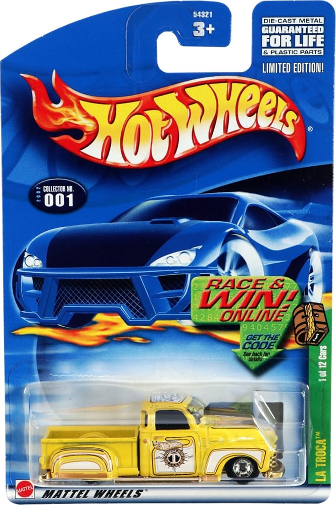 The yellow La Troca is enhanced with a Treasure Hunt emblem on the doors and Real Rider wheels.