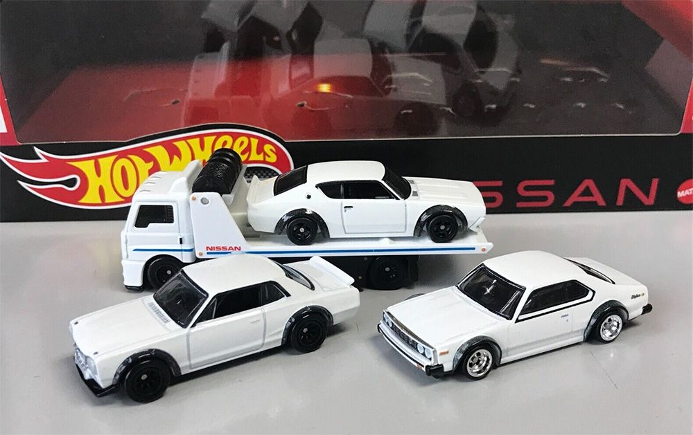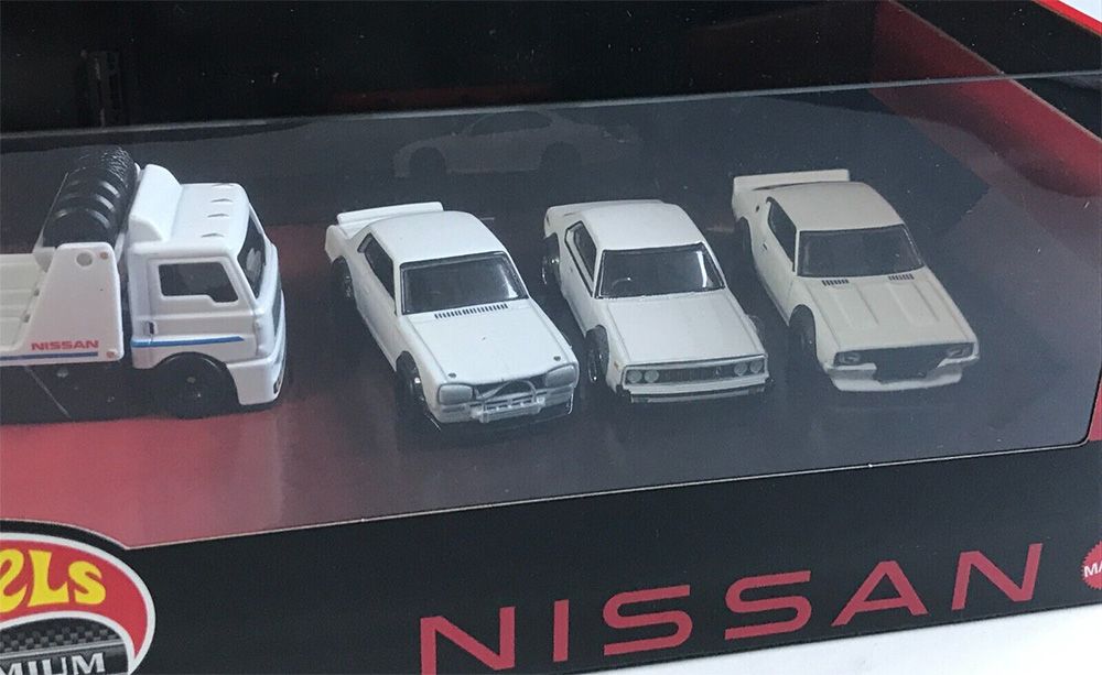 Nissan is the theme of an upcoming Hot Wheels premium diorama box set. The vehicles are all-metal, have lots of detail, and roll on Real Rider wheels.